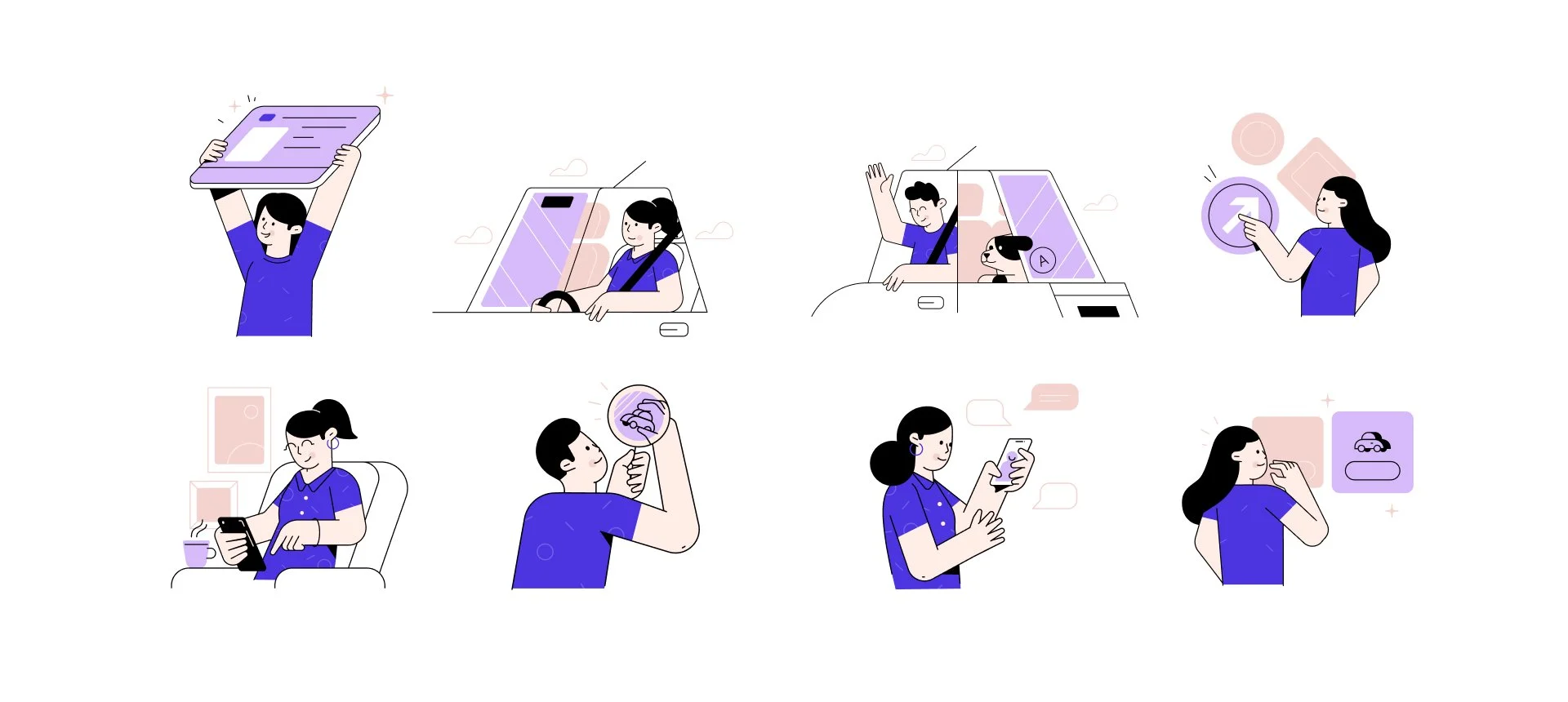 To go alongside the new identity, I designed a complete set of illustrations and icons to brighten the experience across online and offline customer journey, but also for the employer brand.